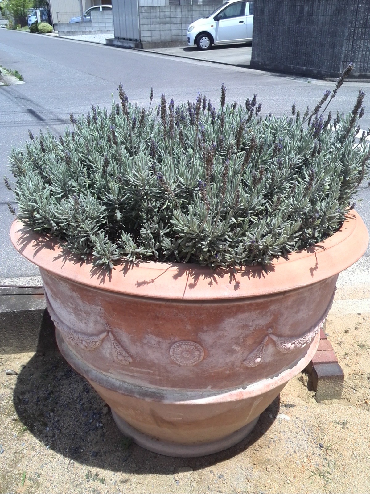 大きな鉢にみっちりのラベンダー。