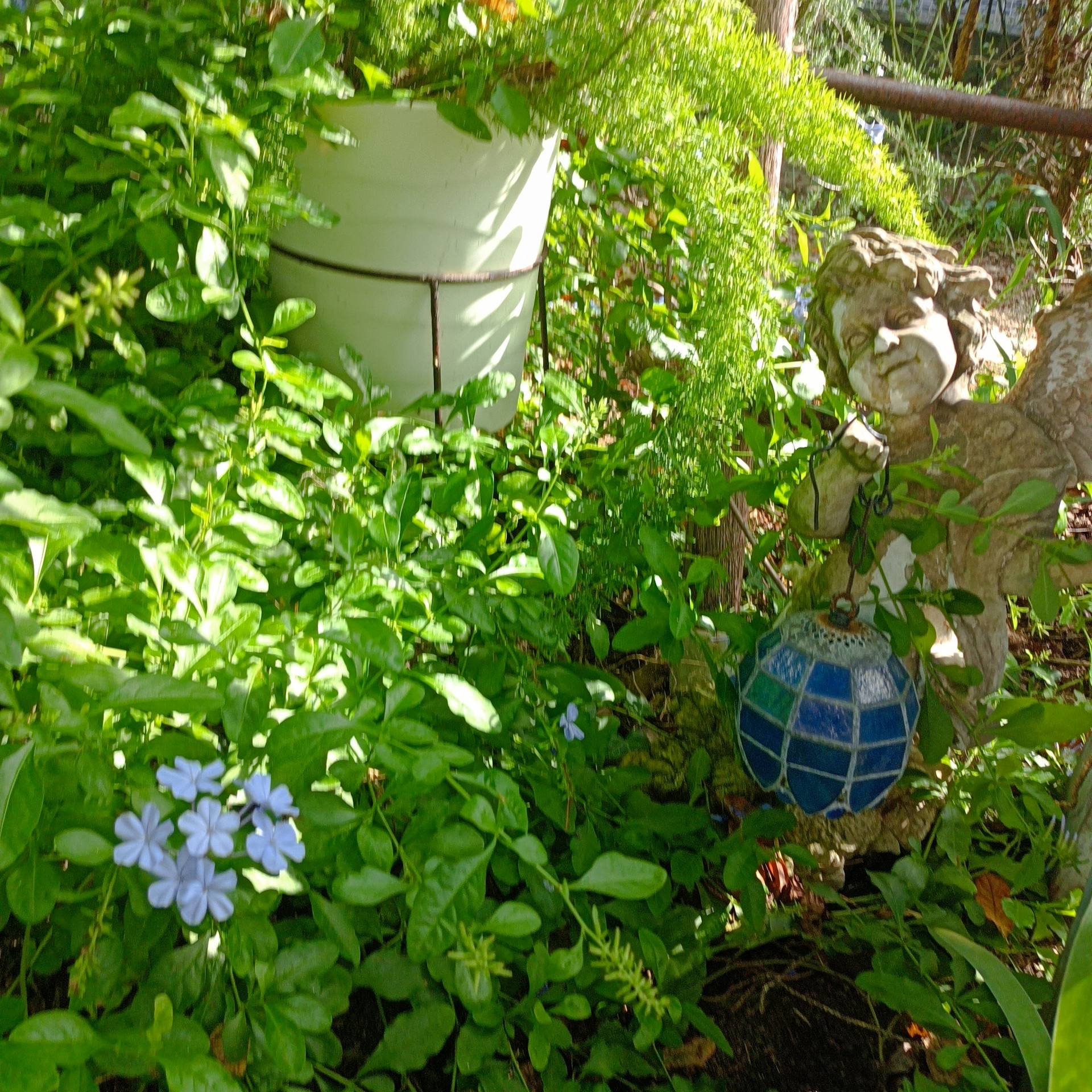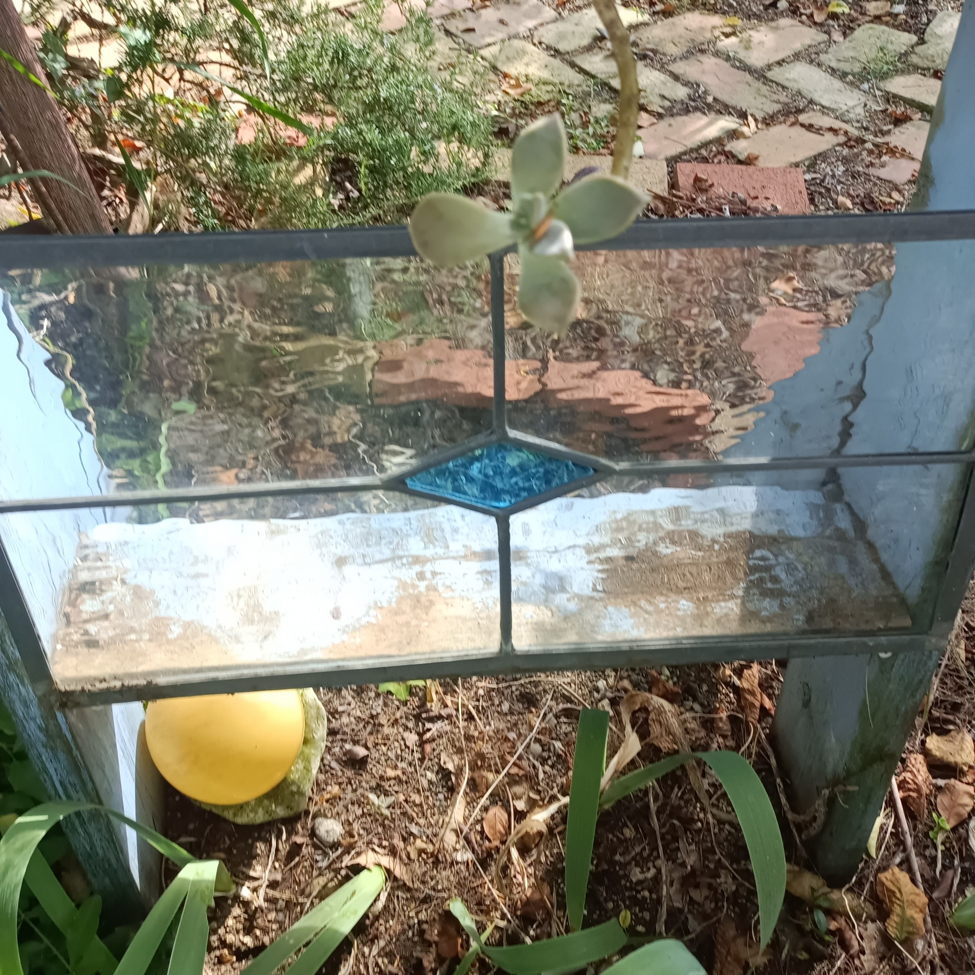 庭のデッキに無造作に置いてあったステンドグラスをもう少し皆が見えるところに場所替えをしました。