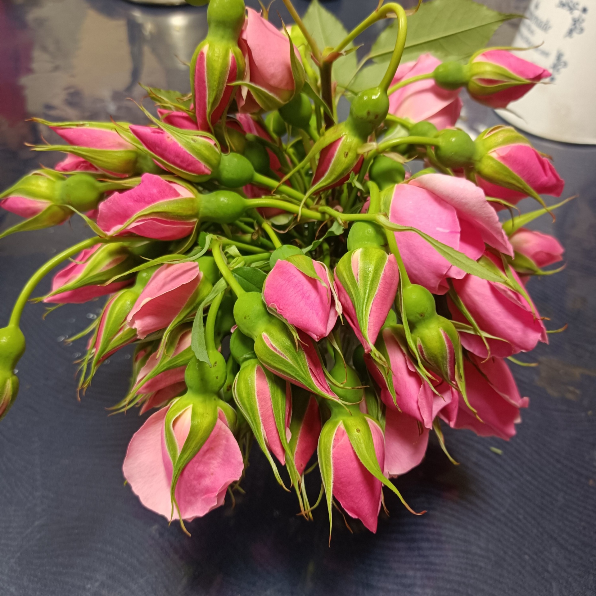 今年はリージャンロードクライマーの蕾を家に持ち帰りちょうどいい頃にシリカゲルに入れるということを繰り返した結果上の方だけが咲いている状態になりました。