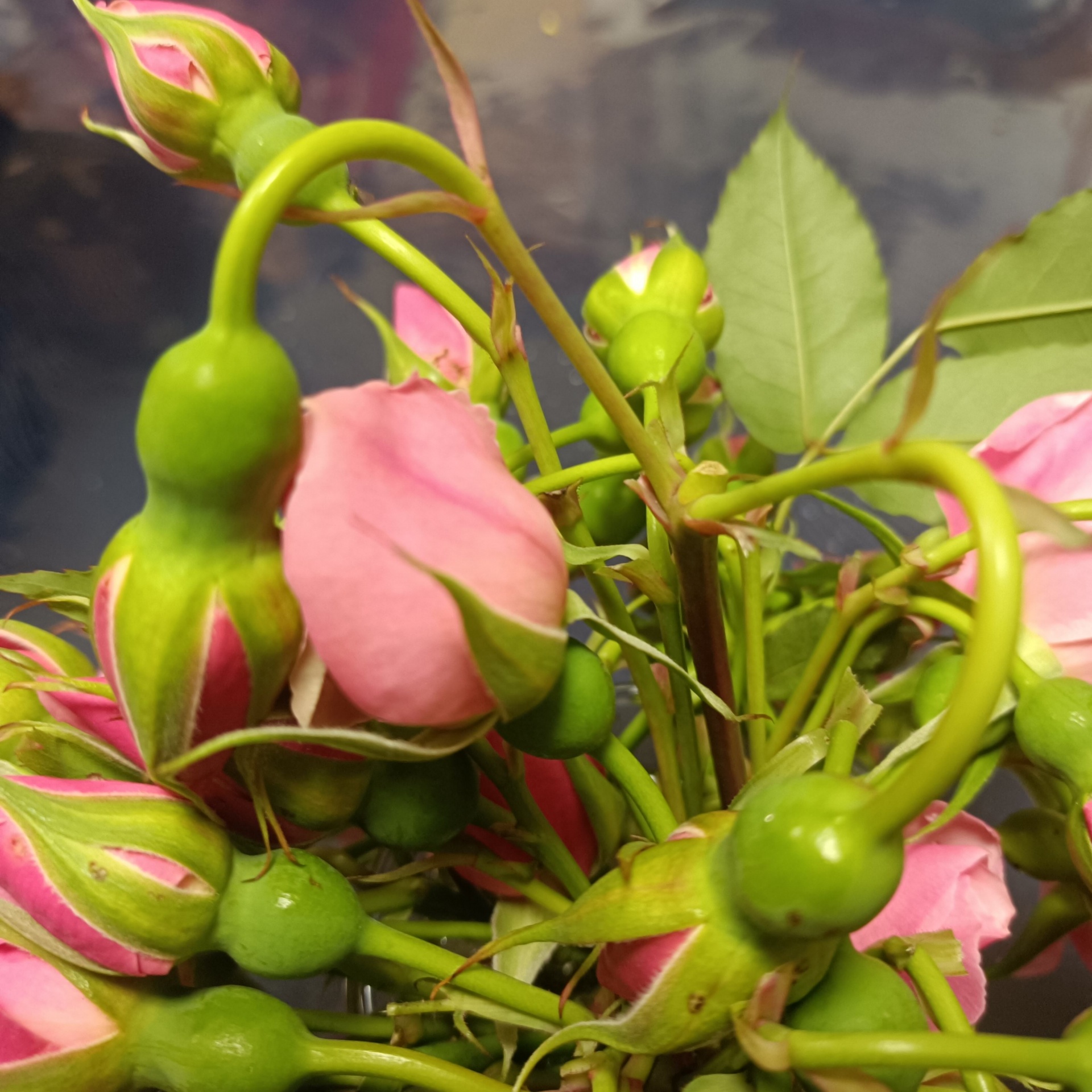 ほとんどが花首の下がくるりんと曲がっているため、