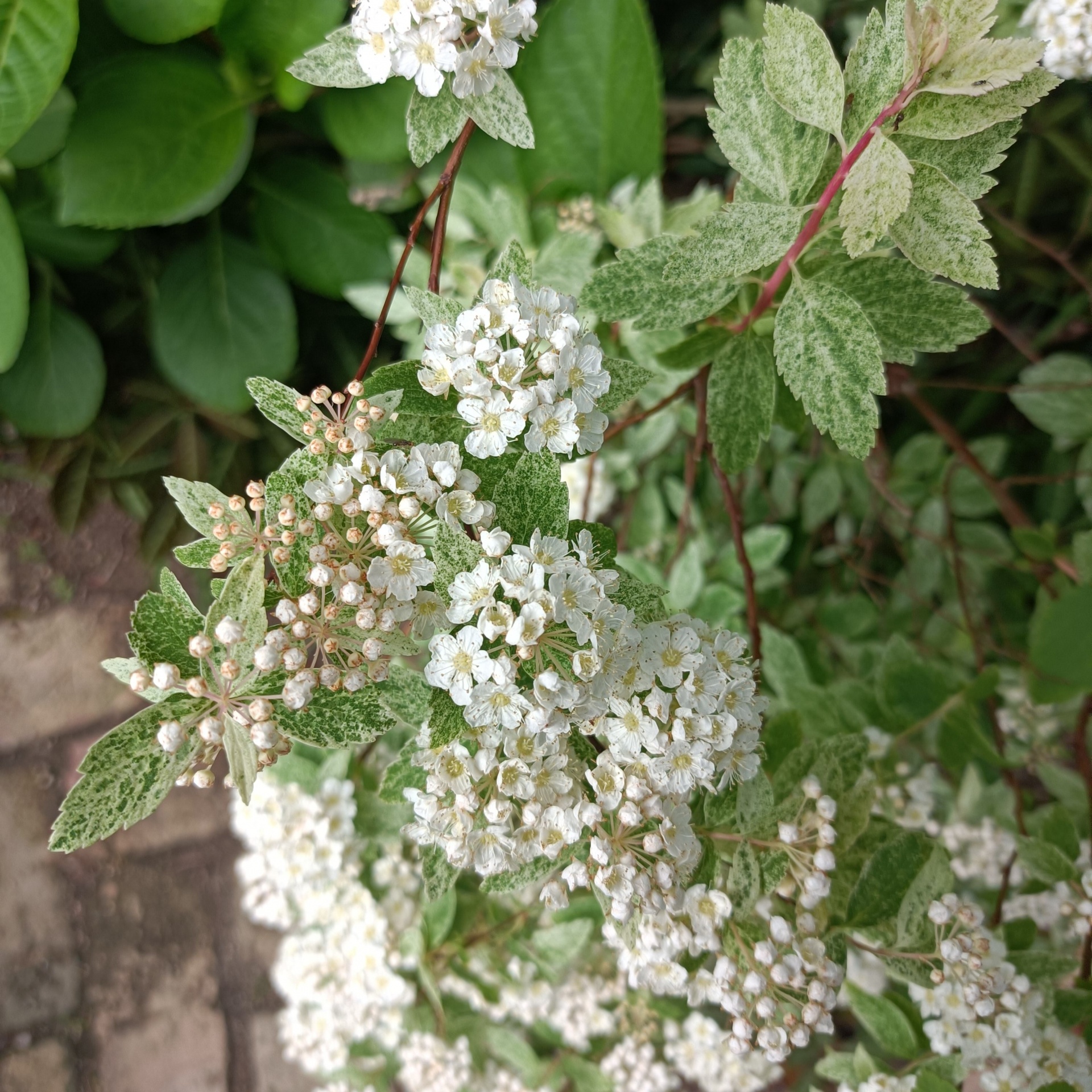斑入りコデマリピンクアイス 斑入りコデマリピンクアイスが咲いています。 大好きな木です。 こちらは普通のコデマリ。普通のは2箇所に今花盛りのと花が終わったものと。 生け花にすると下に落ちる花びらがいやだけど今年は家に飾ってみました。 斑入りの葉っぱが優しくて花も薄っすらピンクぽくていい感じ。 Tweet Applaud0 通報