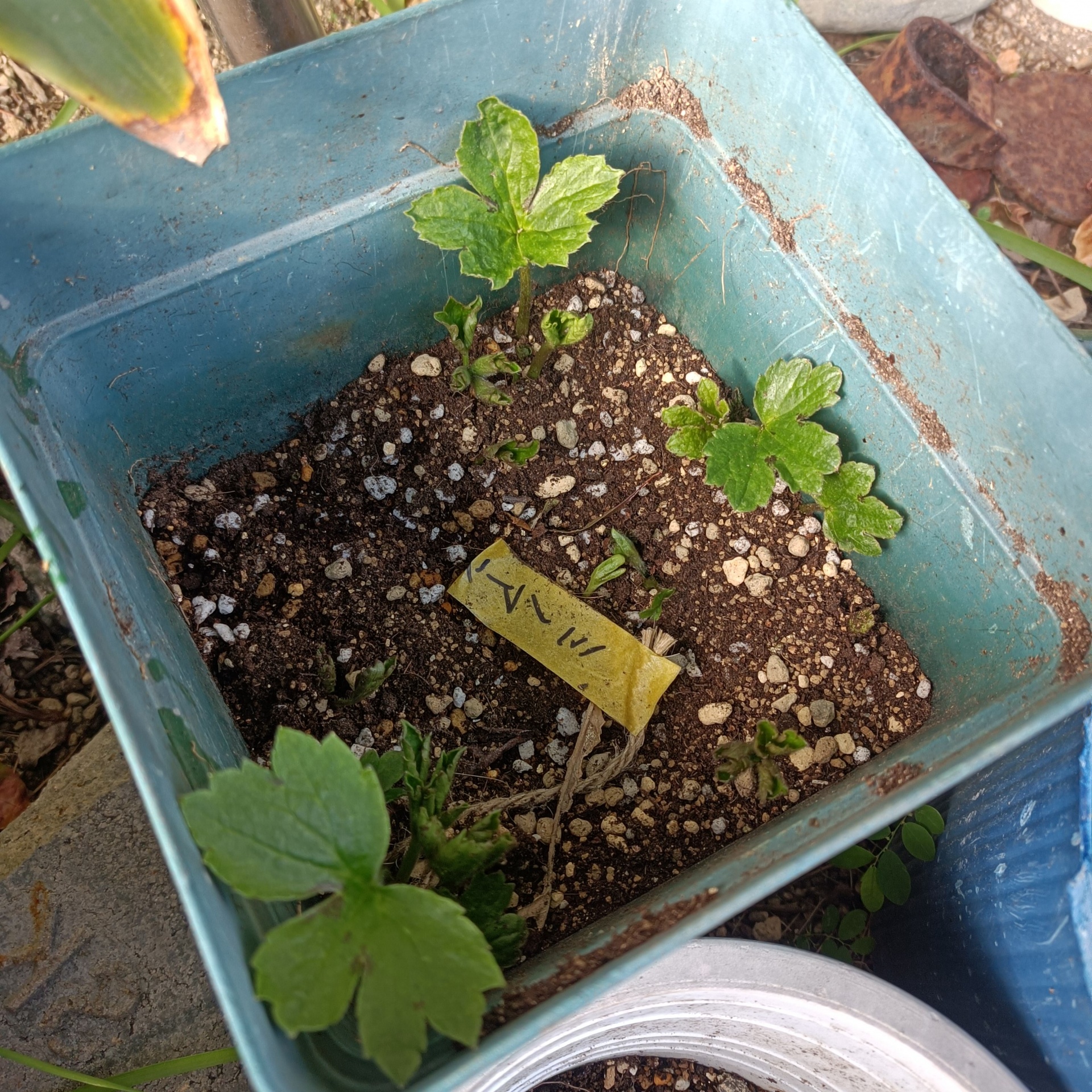 右のプランタンには薔薇の挿し木があったはずなのにシマトネリコの木があるからか上から種が落ちてシマトネリコが成長しています。