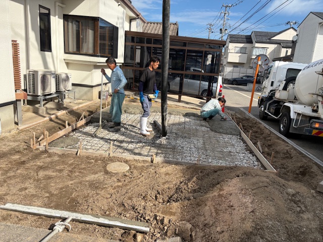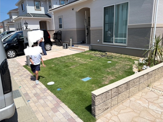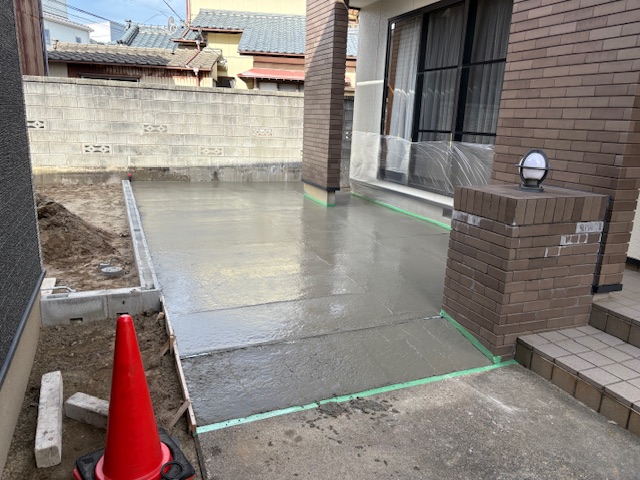 天然芝はメンテが大変という事で撤去し、コンクリートに!!