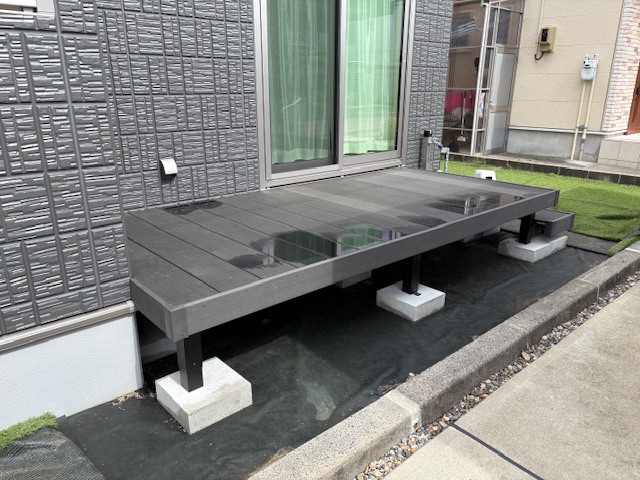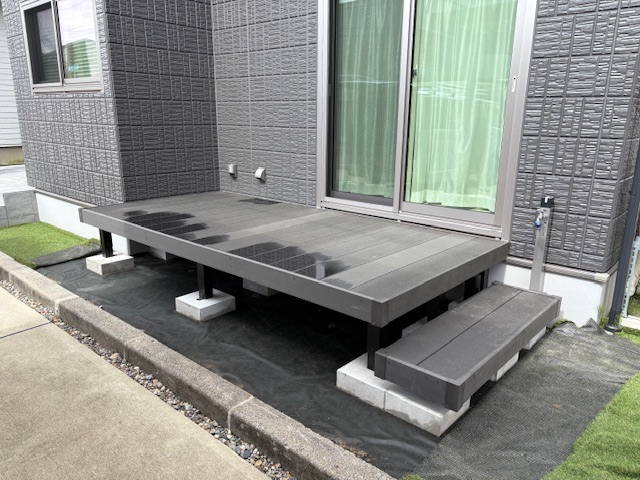 グレーの外壁にグレーのデッキ材がマッチしてますね!!!