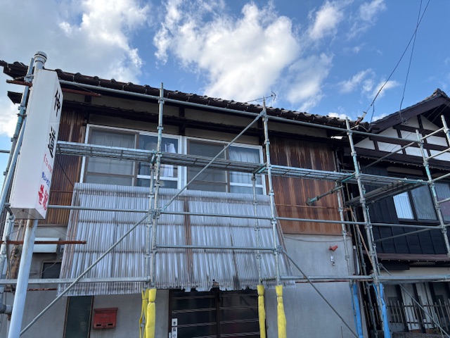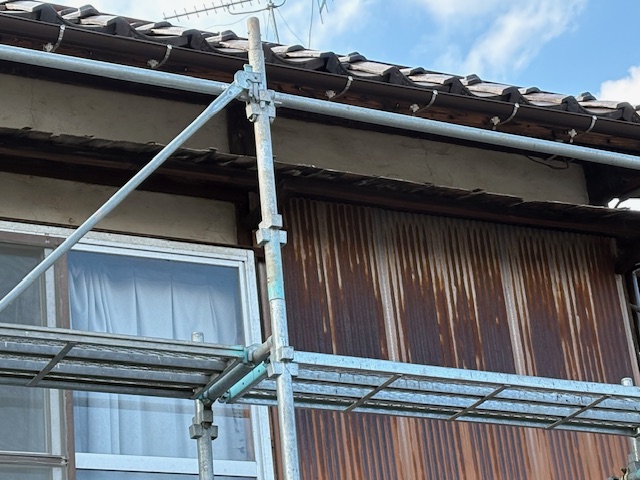 雨樋を直すのにはやはりこれだけの足場が必要です・・・大仕事です!!