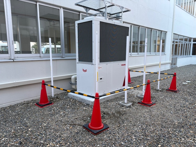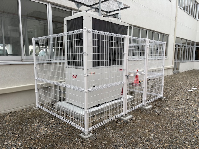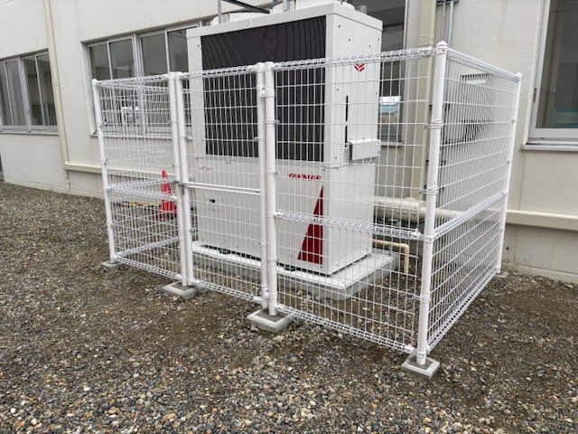 某学校様に新たに設置された大きな室外機をフェンスで柵を!!!