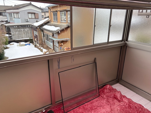 こちらのサッシは先日の大風でテラス囲いから外れ、破損してしまいましたが・・・