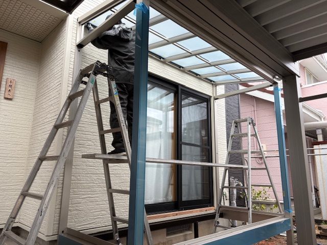 先ずは、既設のカーポートの屋根を入隅加工!!そして・・・