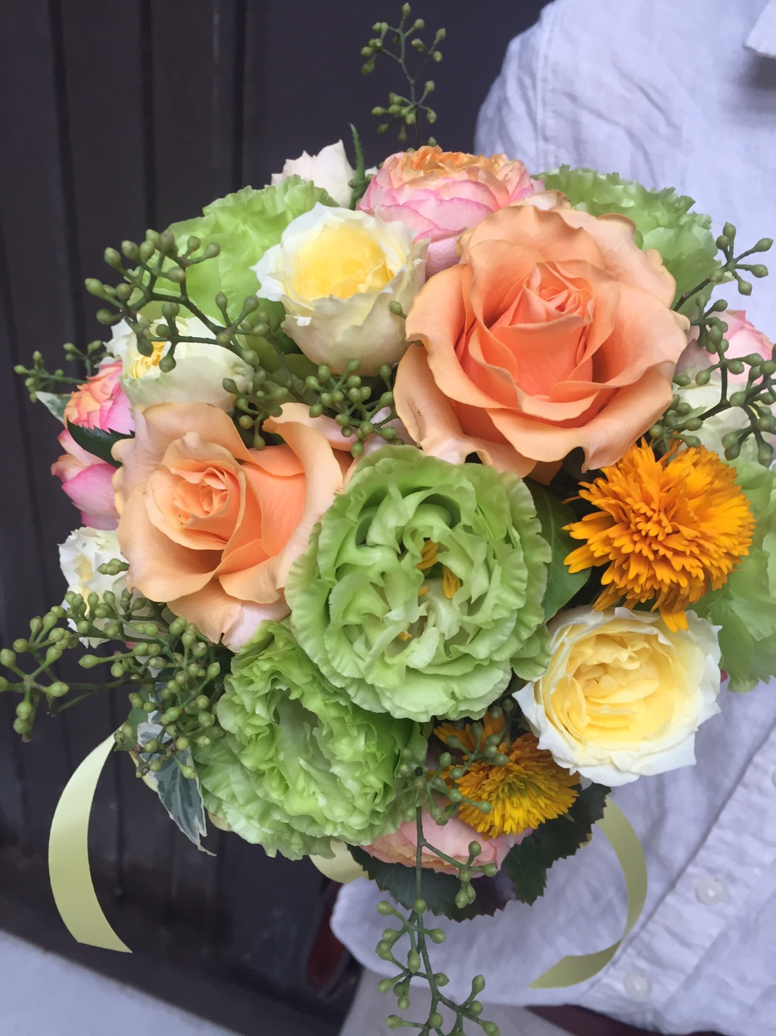 3種類のグリーンを入れ、こちらはかわいいブーケに仕上がりました。