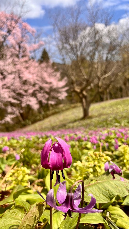 カタクリの群生地は車で10分ほど。