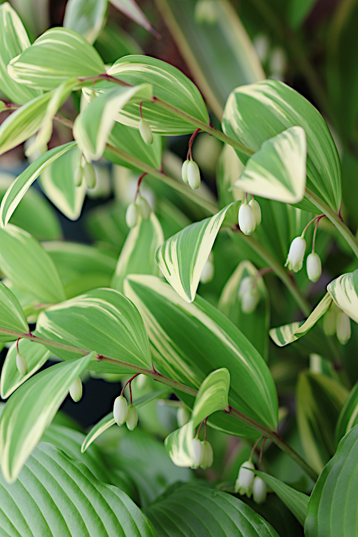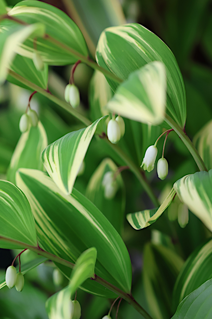 この斑入りの爽やかな葉と下向きにすずらんのような形で咲かすお花が可愛くて大好き。