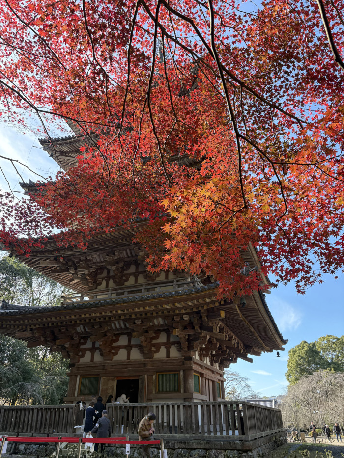 青い空と色付いた紅葉が五重塔の歴史と重みを引き立立てているかのようでウットリでした。