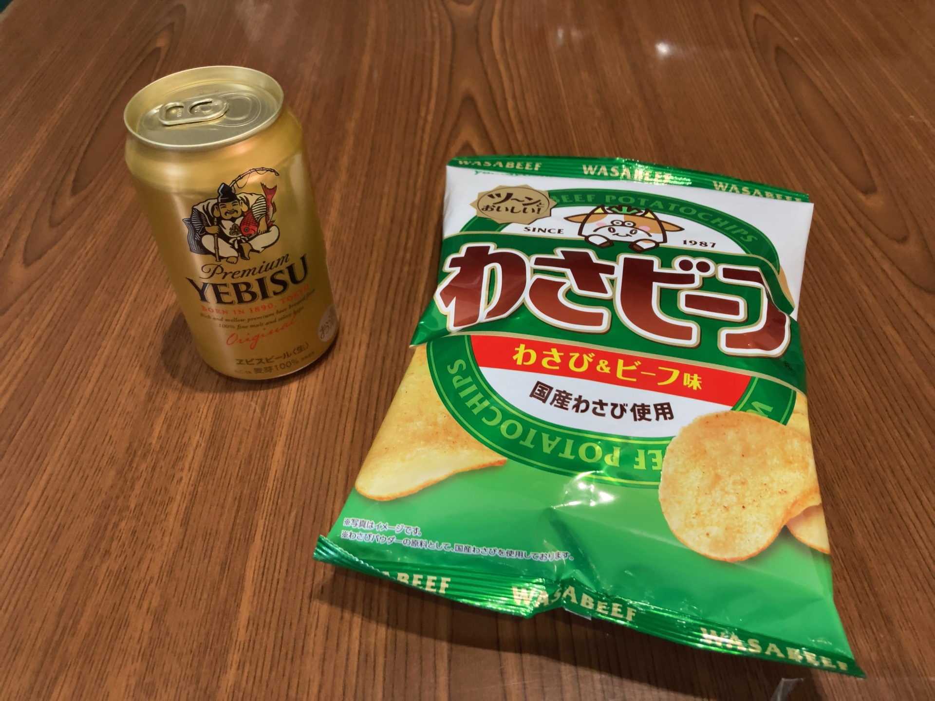Jr.が大好きな兵庫県朝来市で作られた、わさビーフをつまみながら、えべっさんをいだだき