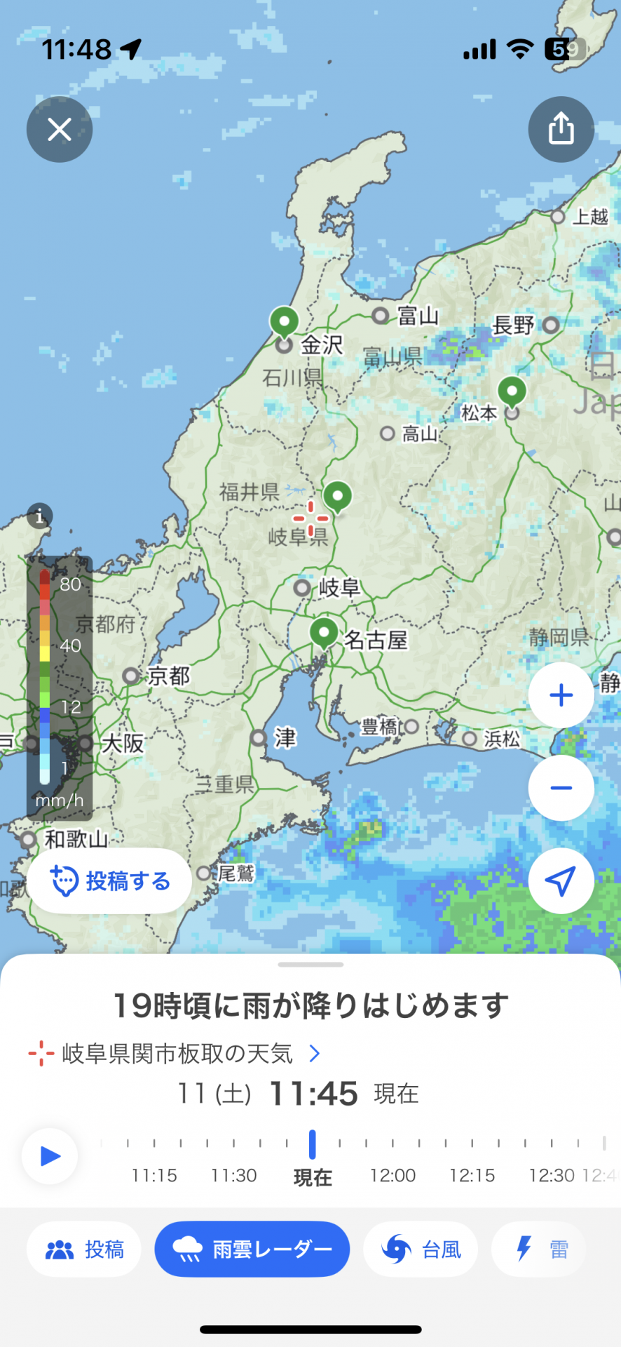 岐阜県高山市も朝方、0.5mmの降水量。