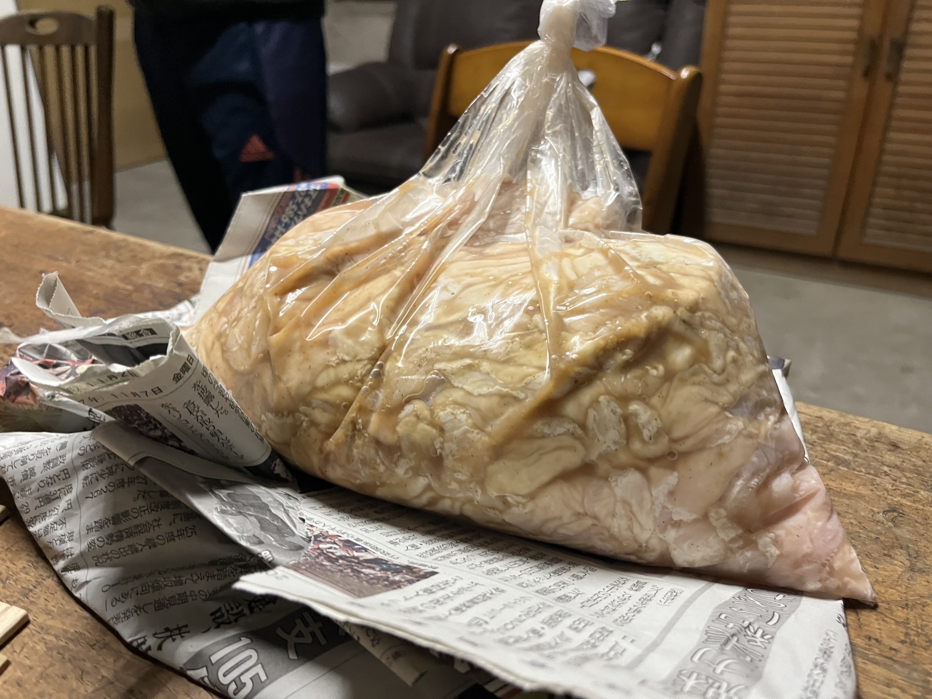 今日の朝・昼は、昨日の宴会で残ったriceballおにぎりを貰ったので、ナナチキをおかずにいただく。