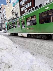 路面電車(市電)が走ってます。日本最北端の路面電車です。