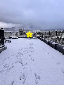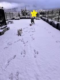 ホテルの屋上のドッグランも雪だらけで、、。